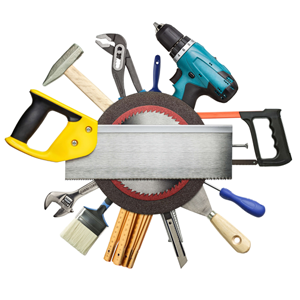 Measuring Tape, Utility Knife, Cutting Plier, Wood saw, Sledge Hammer, Wood Chisels, Spanners, Snap Cutters, Hacksaw, Spirit level, Screw Driver, Claw Hammer. Paint roller & Brush different sizes.